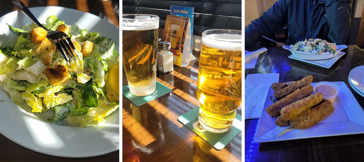 This was a last minute decision to come here and I'm so glad we did. I opted for the deepfried pickles and beef dip sandwich and my partner asked for a side caesar salad and a basket of onion rings. The food came out very fast and when we got the salad, we asked her if it was the side/small size because it was big, and it was. Food was delicious and the portions were big! We will be back again!!